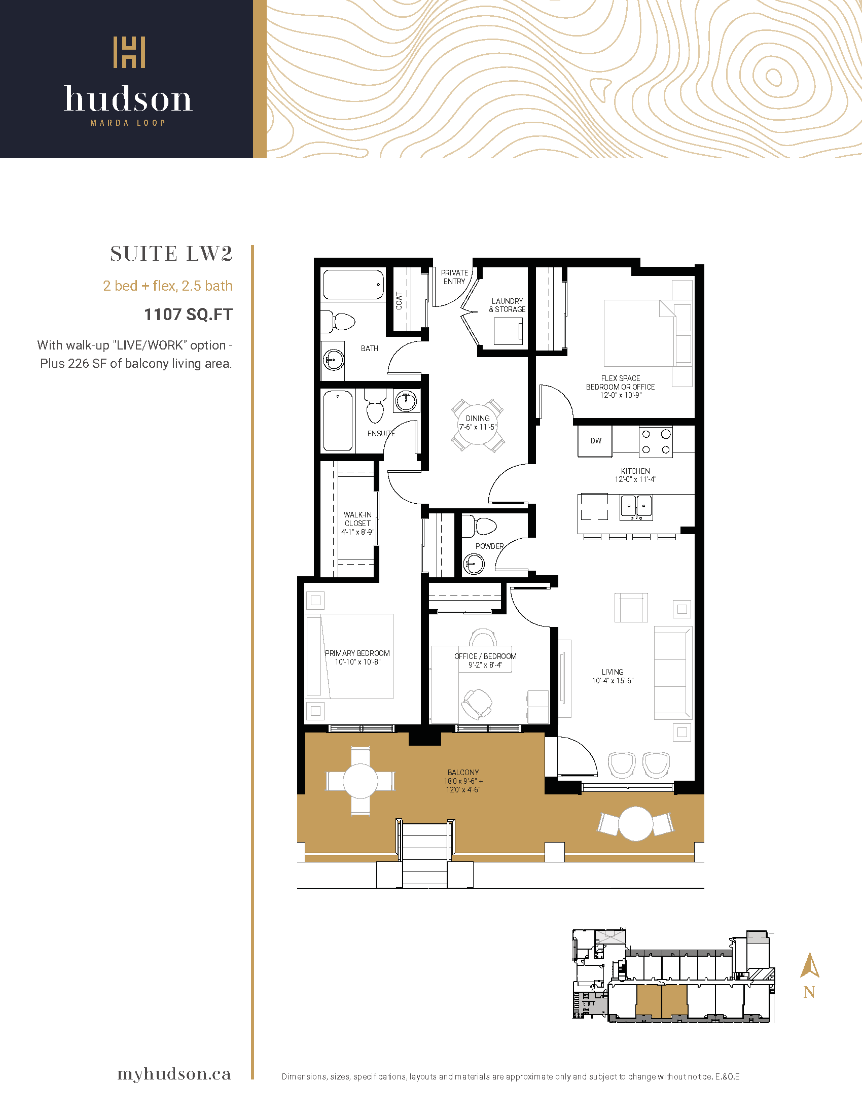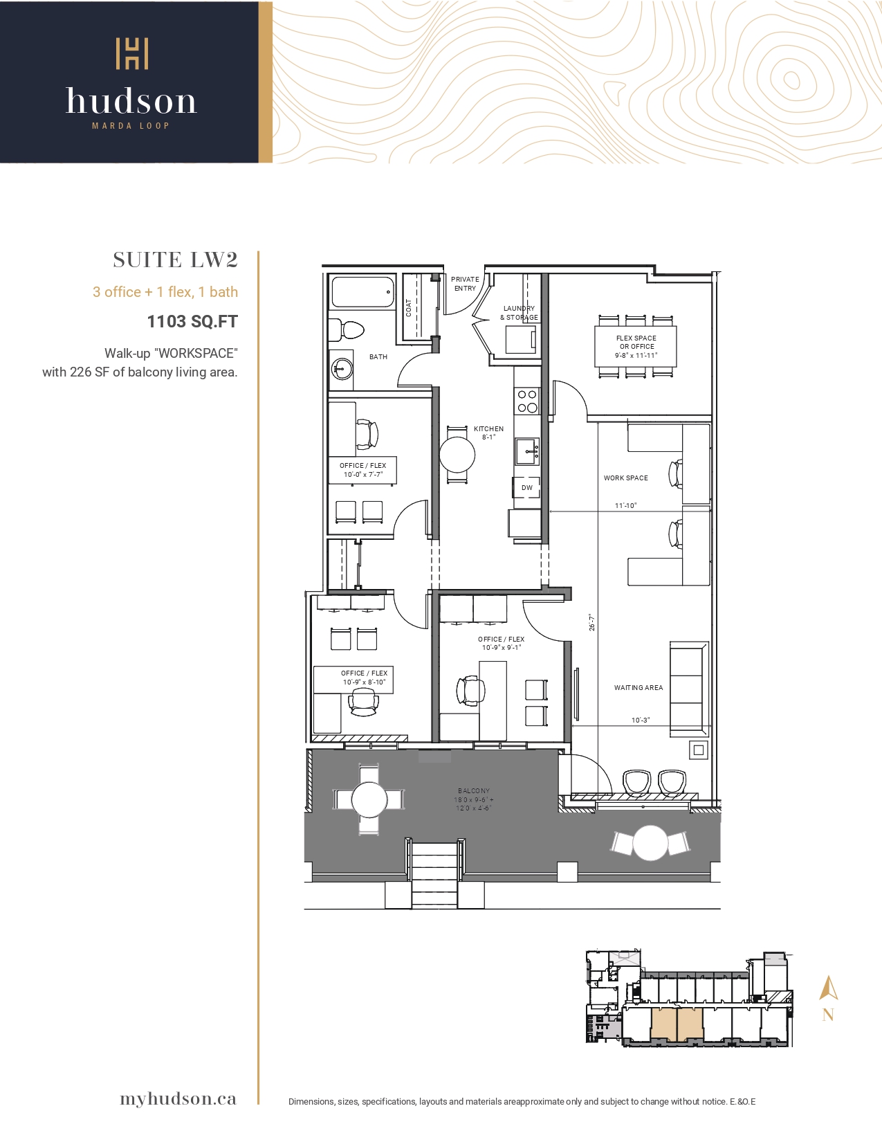 Discover flexible urban living with Hudson’s Live/Work Suites, designed for residents who want to combine home and business in one modern space. These spacious suites feature open-concept layouts with dedicated flex rooms ideal for offices, studios, or creative workspaces. Enjoy private ground-level entry, luxury vinyl plank flooring, quartz countertops, and generous balconies that bring in natural light.